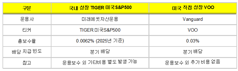표 1. 한국 상장 vs. 미국 직접 상장 ETF 핵심 비교 요약