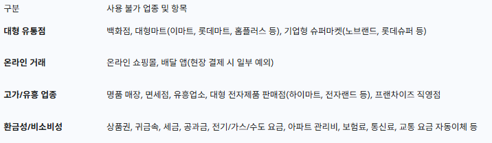 지원금의 효과를 지역 경제에 집중시키려는 정책 의도에 따라, 일부 업종에서는 사용이 엄격히 제한됩니다. 이러한 사용 제한은 단순한 규제가 아니라, 지원금이 대기업이나 온라인 플랫폼으로 유출되는 것을 막고 코로나19 등으로 어려움을 겪은 소상공인에게 실질적인 도움을 주려는 정책의 핵심 수단입니다.