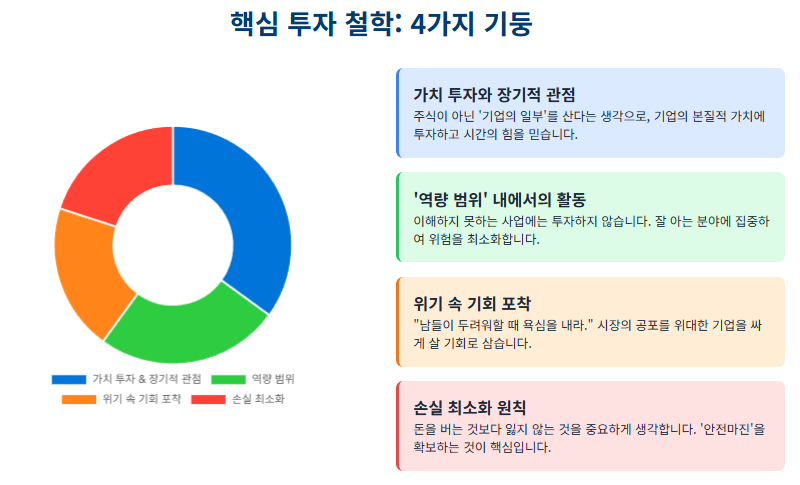 워런 버핏의 성공은 단순히 투자 기술을 넘어, 그의 삶의 모든 측면에서 일관되게 적용된 확고한 원칙적 태도에서 비롯되었습니다.