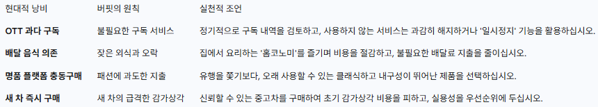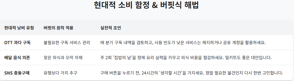표 : 현대 소비 습관과 워런 버핏의 원칙 적용