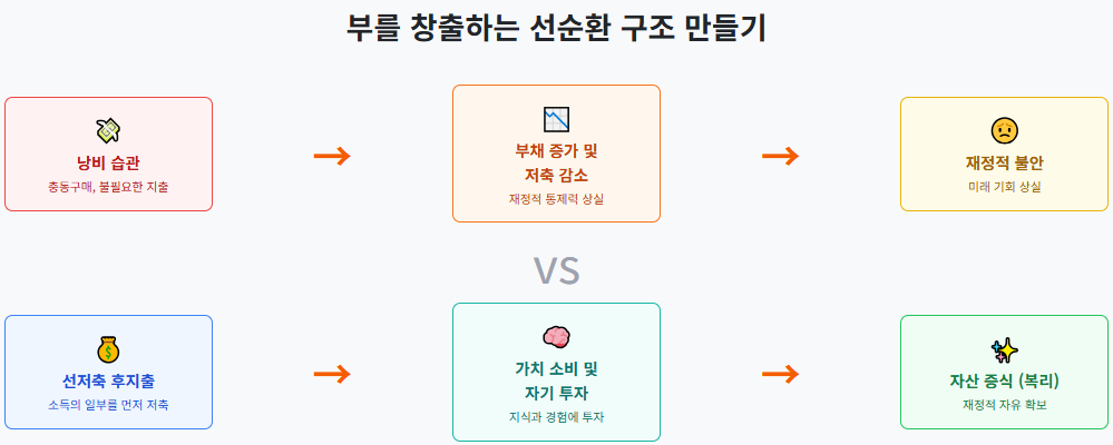 그의 검소함은 외부의 시선이나 사회적 인정에 얽매이지 않고, 자신의 내면적 가치에 집중하는 철학적 태도에서 비롯됩니다. 그는 겉모습을 유지하는 '결핍의 사고방식'에 빠져 불필요한 지출을 하는 것을 경계하며, 돈이 자신을 위해 일하도록 만드는 것이 진정한 부를 쌓는 방법이라고 강조합니다. 이러한 가치 중심의 삶은 '돈을 버는 것보다 쓰는 게 중요하다'는 그의 소비 규칙과 연결되며, 본 보고서에서 다룰 여러 낭비 습관의 문제점을 이해하는 데 있어 가장 중요한 토대가 됩니다.